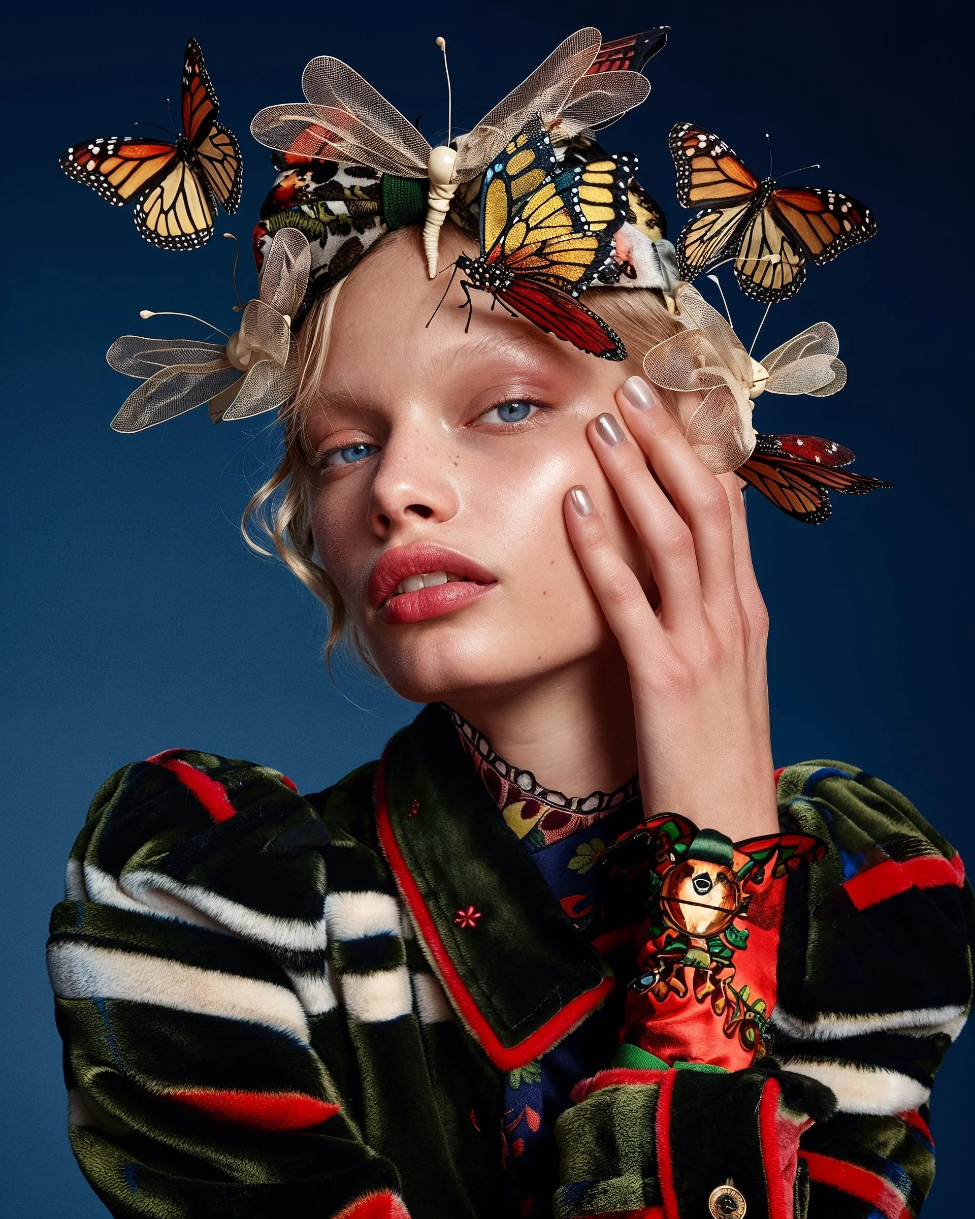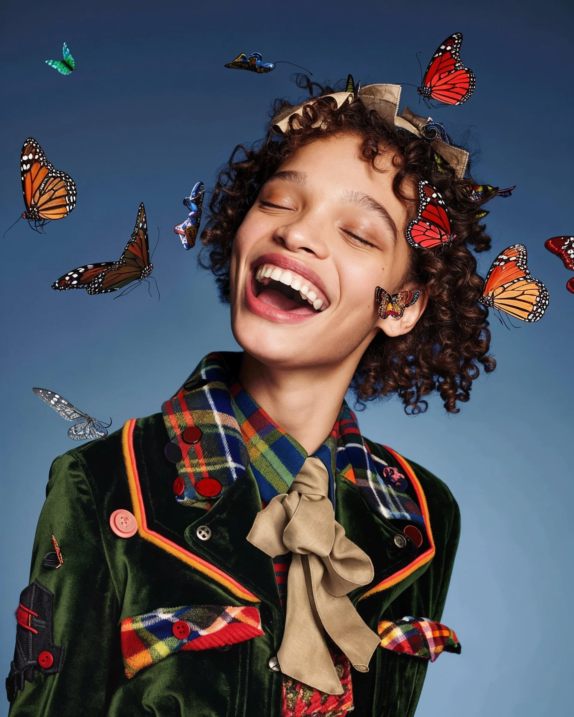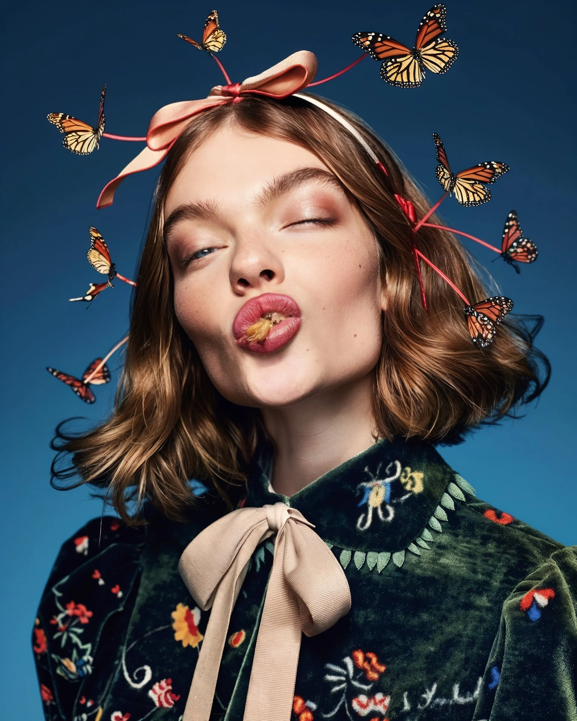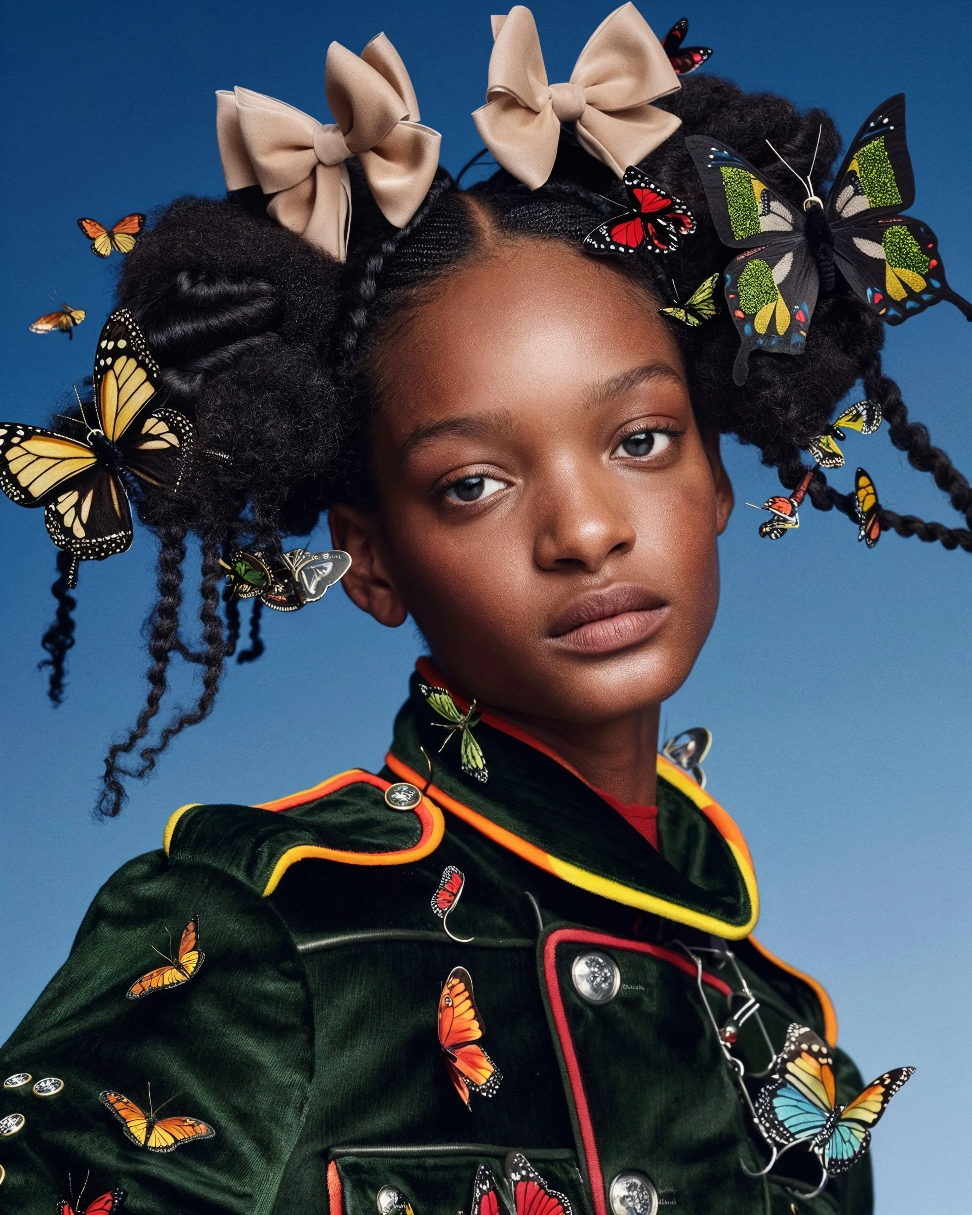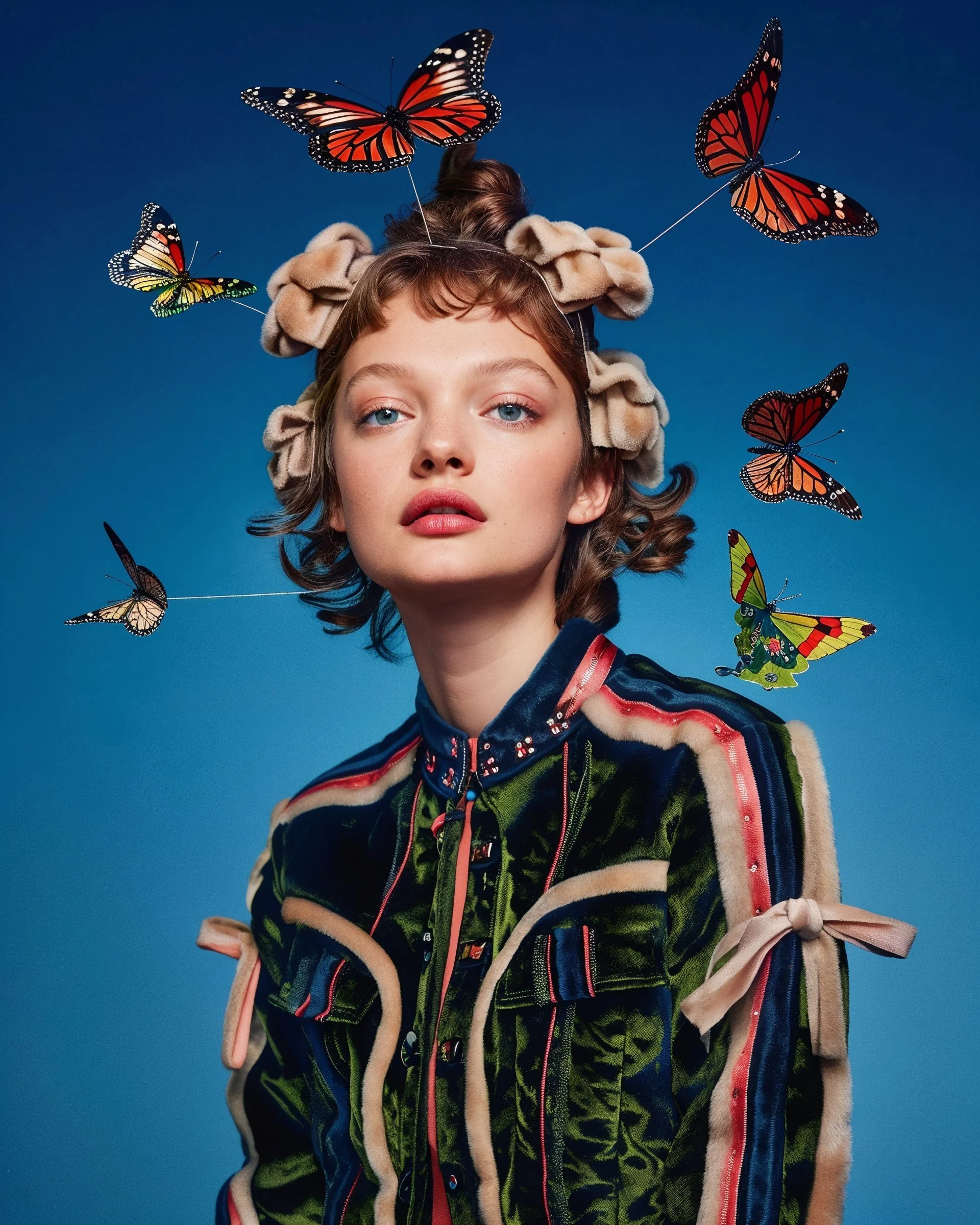 Taking cues from the luxury of velvet and the sporty edge of athletic wear, blending elements like bows, butterflies, and a hint of pizzazz. Each piece is crafted to evoke a sense of joy, with an eclectic blend of patterns and intricate details.