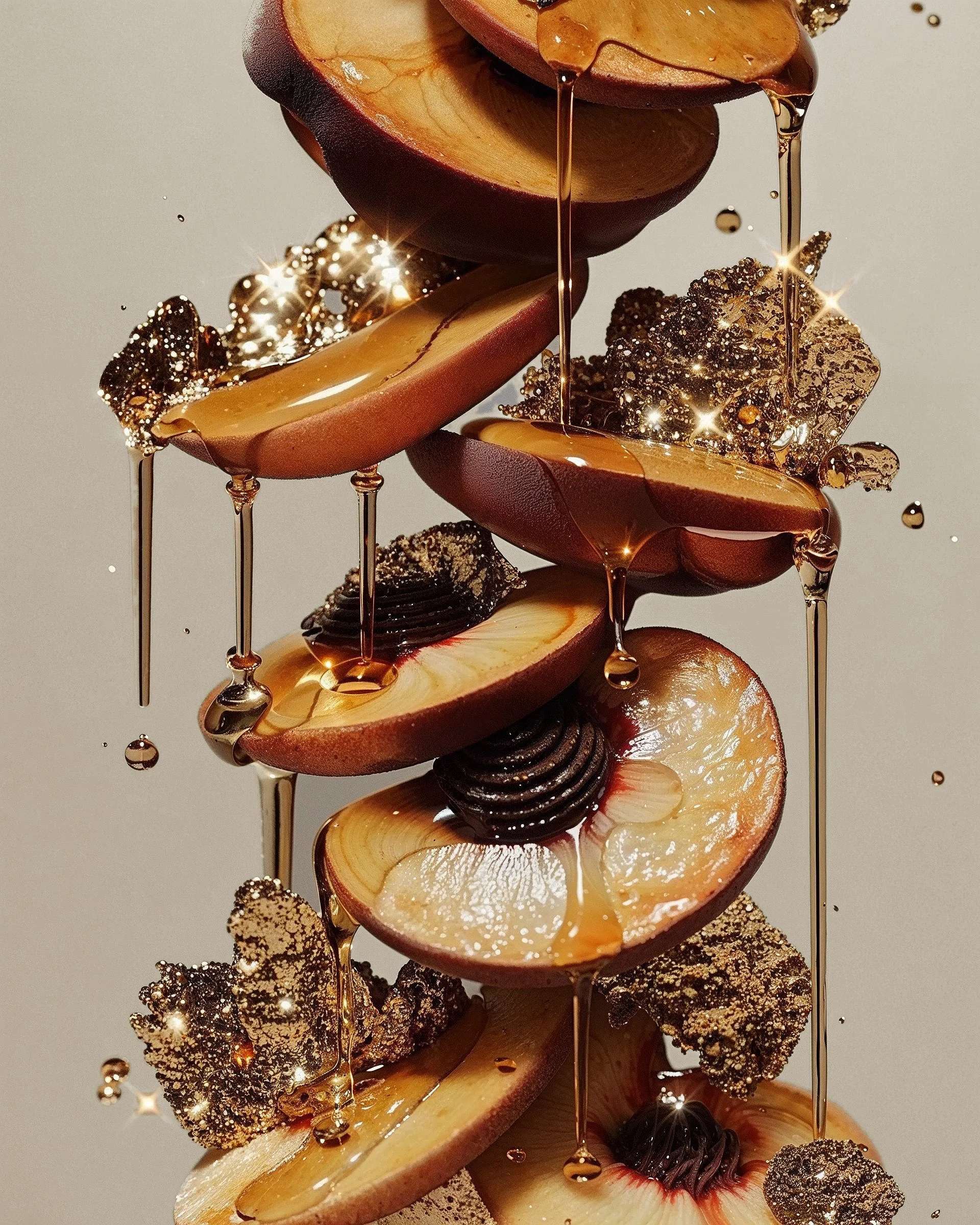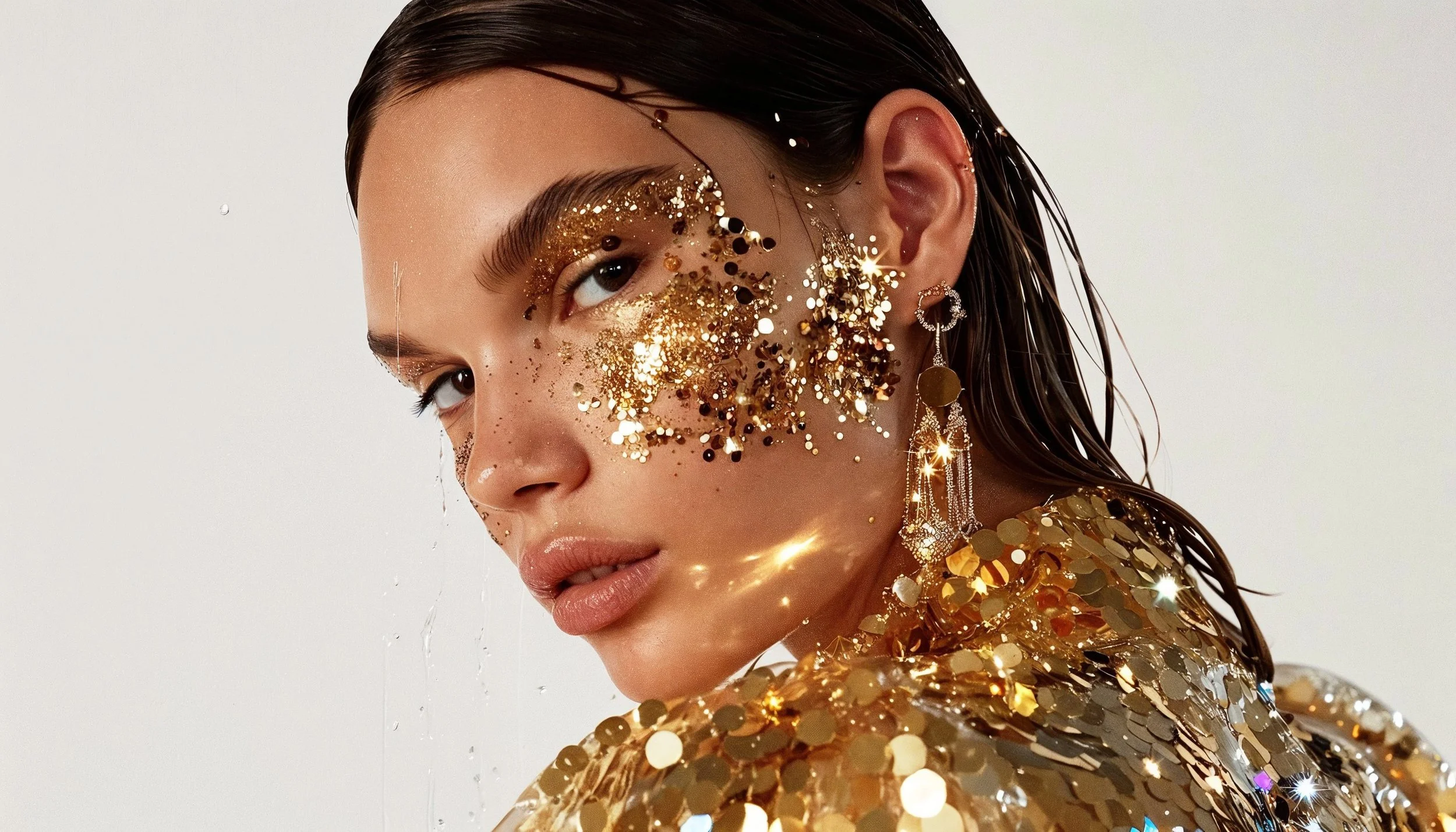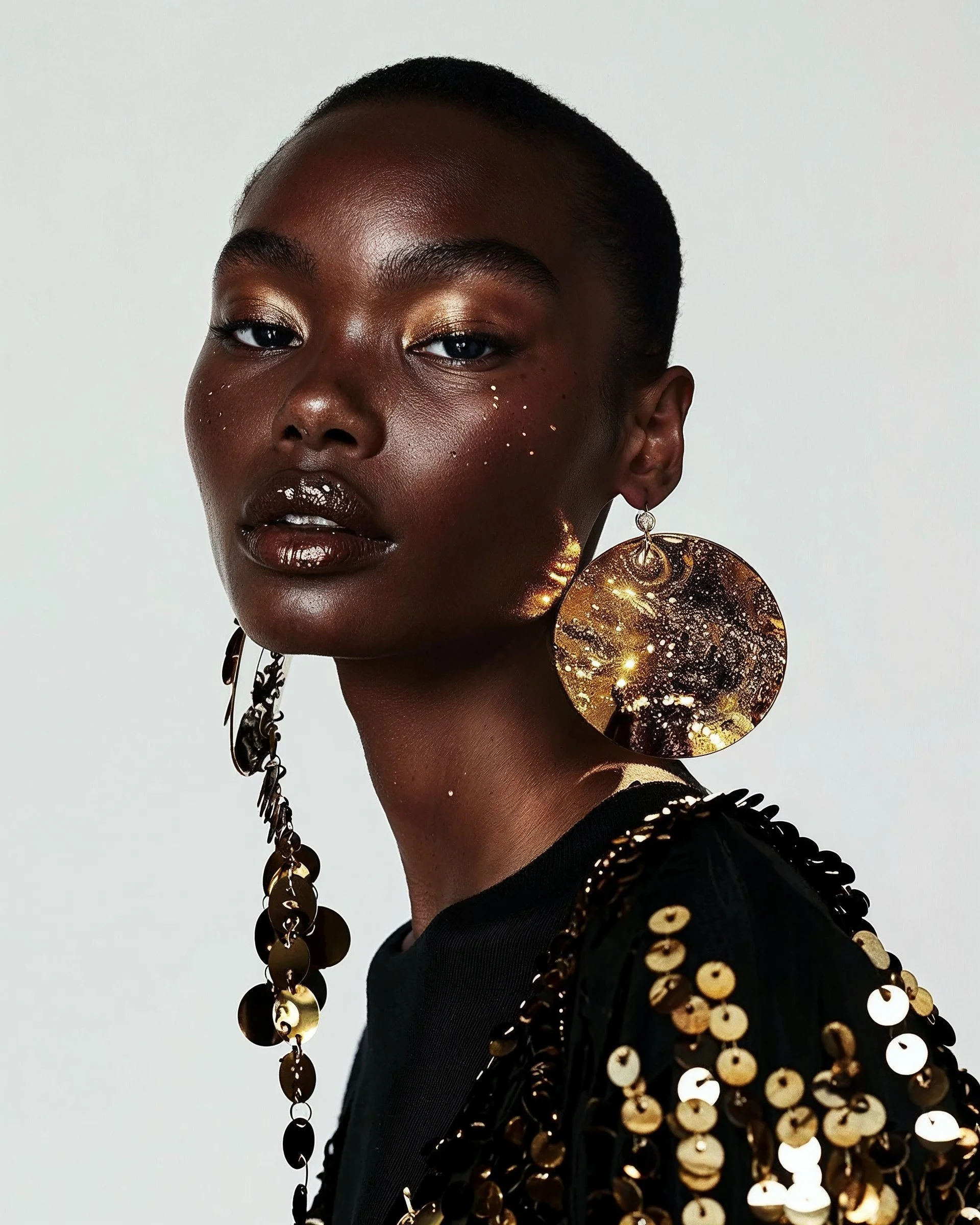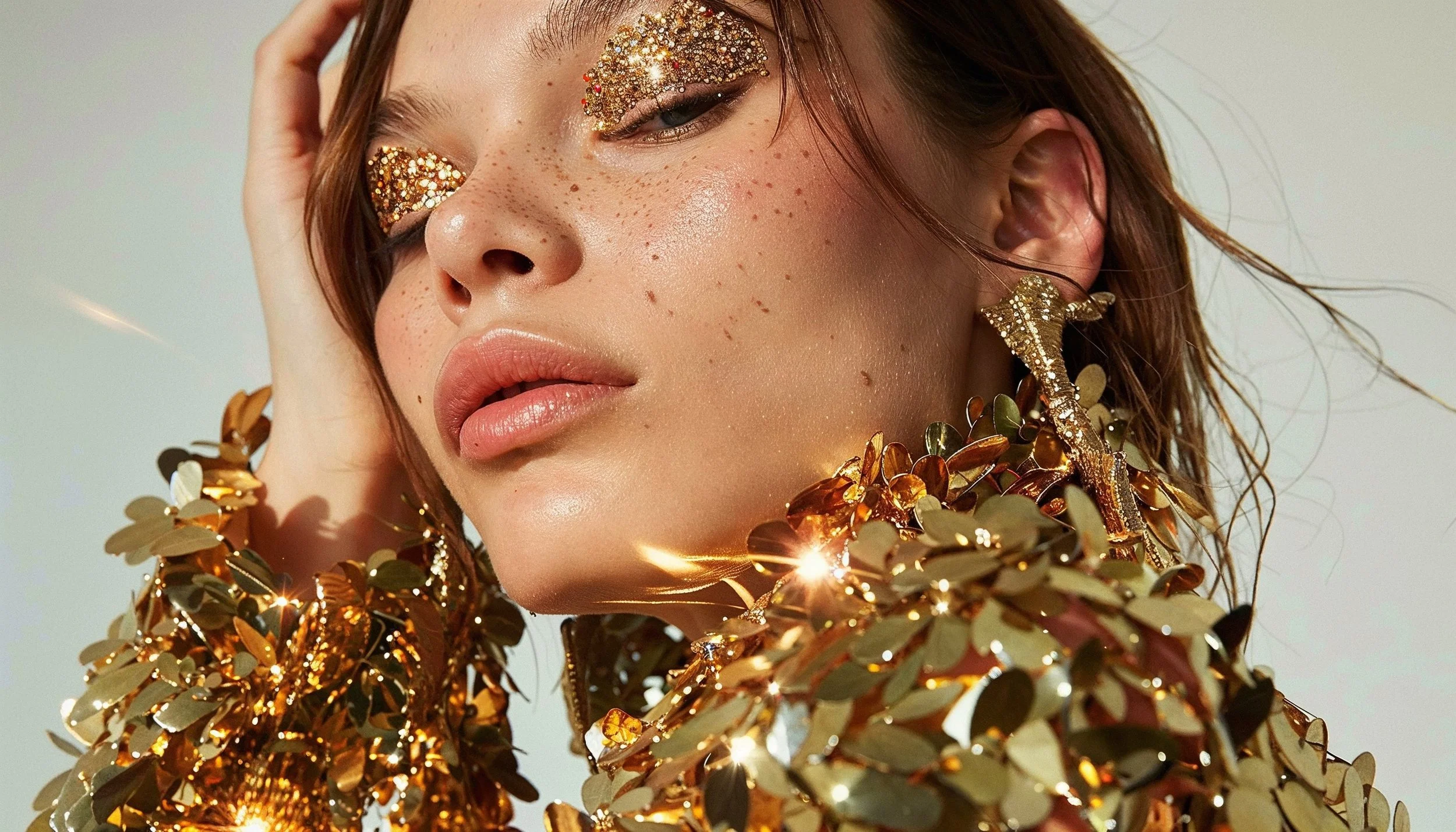This editorial blends the sexiness of metallic gold with the sweetness of honey, celebrating summer's nights.